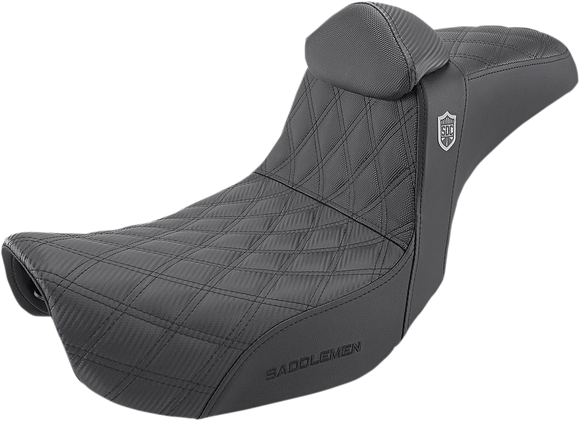 True performance oriented comfort seat, best of both worlds with contoured lines and a bucketed driver*s seating area and substantial lumbar, Saddlemen seats with GelCore* Technology are the only motorcycle seats scientifically proven to reduce engine vibration by up to 50% and road impacts by up to 92% instantly providing the ride you deserve, Crafted with Saddlemen*s carbon fiber front with black gripper lumbar in passenger area, SDC logo badge on either side, Add a pop of color or match accessories with available accented stitch colors, Made in the USA